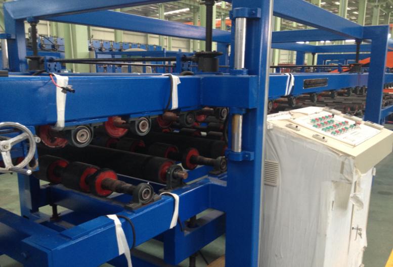 4.主機采用外包橡膠輥臥式復合,保護了彩鋼板漆面保護及夾芯板的加壓復合;